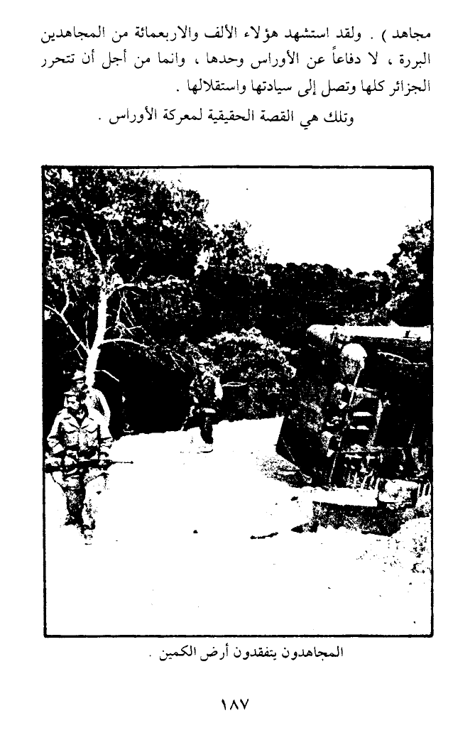 مجاهد). ولقد استشهد هؤلاء الألف والأربعمائة من المجاهدين البررة، لا دفاعا عن الأوراس وحدها، وإنما من أجل أن تتحرر الجزائر كلها وتصل إلى سيادتها واستقلالها.