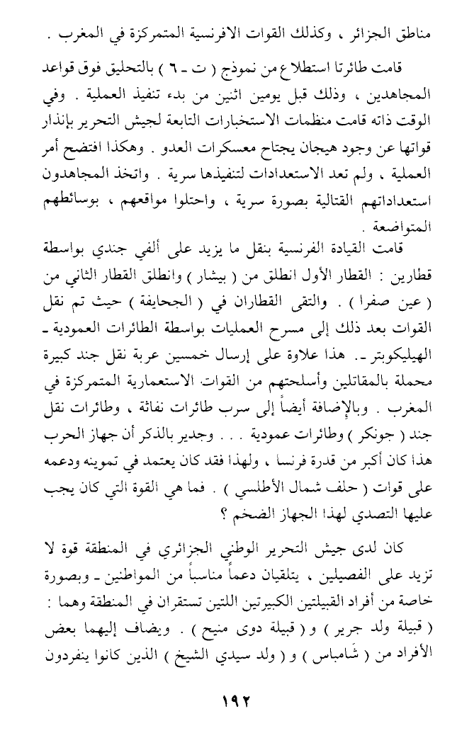 القوات بعد ذلك إلى مسرح العمليات بواسطة الطائرات العمودية - الهيليكوبتر -. هذا علاوة على إرسال خمسين عربة نقل جند كبيرة محملة بالمقاتلين وأسلحتهم من القوات الاستعمارية المتمركزة في المغرب. وبالإضافة أيضا إلى سرب طائرات نفاثة، وطائرات نقل جند (جونكر) وطائرات عمودية ... وجدير بالذكر أن جهاز الحرب هذا كان أكبر من قدرة فرنسا، ولهذا فقد كان يعتمد في تموينه ودعمه على قوات (حلف شمال الأطلسي). فما هي القوة التي كان يجب عليها التصدي لهذا الجهاز الضخم؟