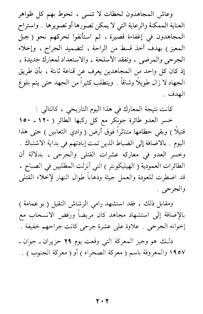 ومقابل ذلك، فقد استشهد رامي الرشاش الثقيل (بو عمامة) بالإضافة إلى استشهاد مجاهد كان مريضا ورفض الانسحاب مع إخوانه الجرحى. علاوة على عشرة جرحى كانت جراحهم خفيفة. ذلك هو وجيز المعركة التي وقعت يوم 29 حزيران - جوان - 1957 والمعروفة باسم (معركة الصحراء) أو (معركة الجنوب).