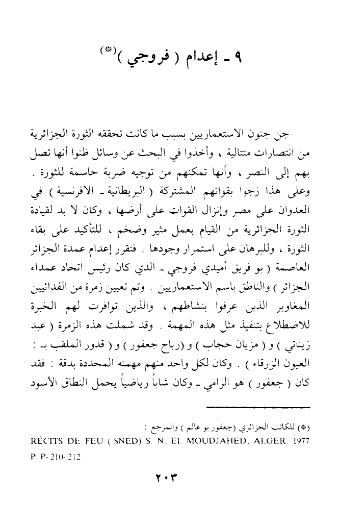 RECITS DE FEU (SNED) S. N. EL MOU DJ A H ED. ALGER 1977 P. P- 210 - 212.
