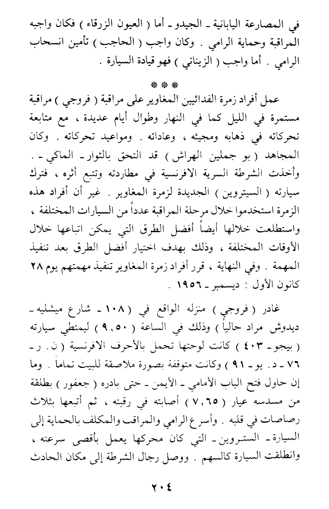 غادر (فروجي) منزله الواقع في (108 - شارع ميشليه - ديدوش مراد حاليا) وذلك في الساعة (950) ليمتطي سيارته (بيجو - 403) كانت لوحتها تحمل بالأحرف الافرنسية (ن. ر - 76 - د. يو - 91) وكانت متوقفة بصورة ملاصقة للبيت تماما وما إن حاول فتح الباب الأمامي - الأيمن - حتى بادره (جعفور) بطلقة من مسدسه عيار (7،65) أصابته في رقبته، ثم أتبعها بثلاث رصاصات في قلبه. وأسرع الرامي والمراقب والمكلف بالحماية إلى السيارة - الستروين - التي كان محركها يعمل بأقصى سرعته، وانطلقت السيارة كالسهم. ووصل رجال الشرطة إلى مكان الحادث