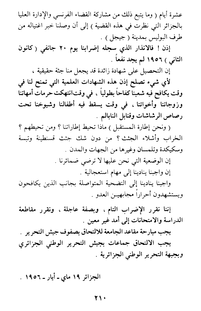 يجب مبارحة مقاعد الجامعة للالتحاق بصفوف جيش التحرير.