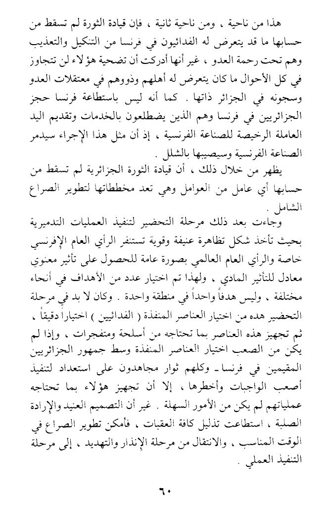 يظهر من خلال ذلك، أن قيادة الثورة الجزائرية لم تسقط من حسابها أي عامل من العوامل وهي تعد مخططاتها لتطوير الصراع الشامل.
