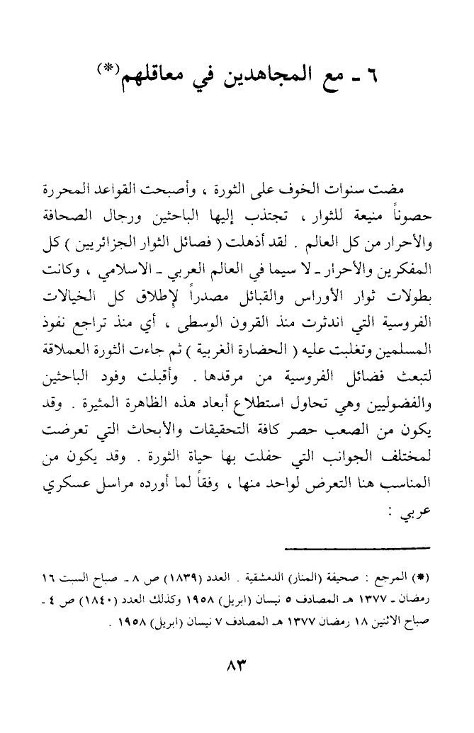 (*) المرجع: صحيفة (المنار) الدمشقية. العدد (1839) ص 8 - صباح السبت 16 رمضان - 1377 م المصادف 5 نيسان (أبريل) 1958 وكذلك العدد (1840) ص 4 - صباح الاثنين 18 رمضان 1377 هـ - المصادف 7 نيسان (ابريل) 1958