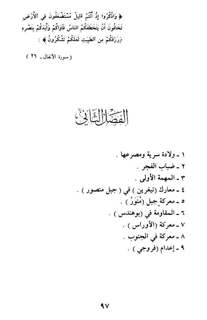 {وَاذْكُرُوا إِذْ أَنْتُمْ قَلِيلٌ مُسْتَضْعَفُونَ فِي الْأَرْضِ تَخَافُونَ أَنْ يَتَخَطَّفَكُمُ النَّاسُ فَآوَاكُمْ وَأَيَّدَكُمْ بِنَصْرِهِ وَرَزَقَكُمْ مِنَ الطَّيِّبَاتِ لَعَلَّكُمْ تَشْكُرُونَ}: (سورة الأنفال - 26).