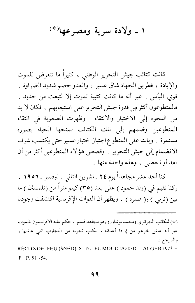 RECITS DE FEU(SNED) S . N. EL MOUDJAHED . ALGER 1977 - P . P. 51 - 54,