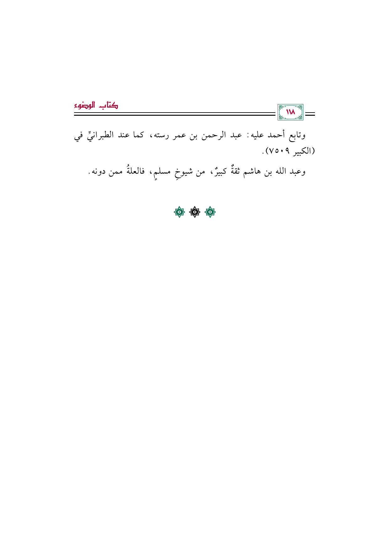 وتابع أحمد عليه: عبد الرحمن بن عمر رسته، كما عند الطبرانيِّ في (الكبير ٧٥٠٩).