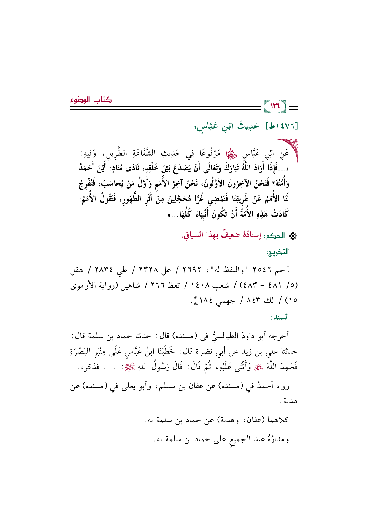 ومدارُهُ عند الجميعِ على حماد بن سلمة به.