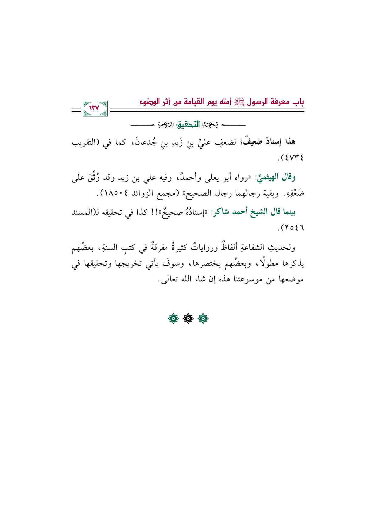 بينما قال الشيخ أحمد شاكر: "إسنادُهُ صحيحٌ"! ! كذا في تحقيقه لـ (المسند ٢٥٤٦).