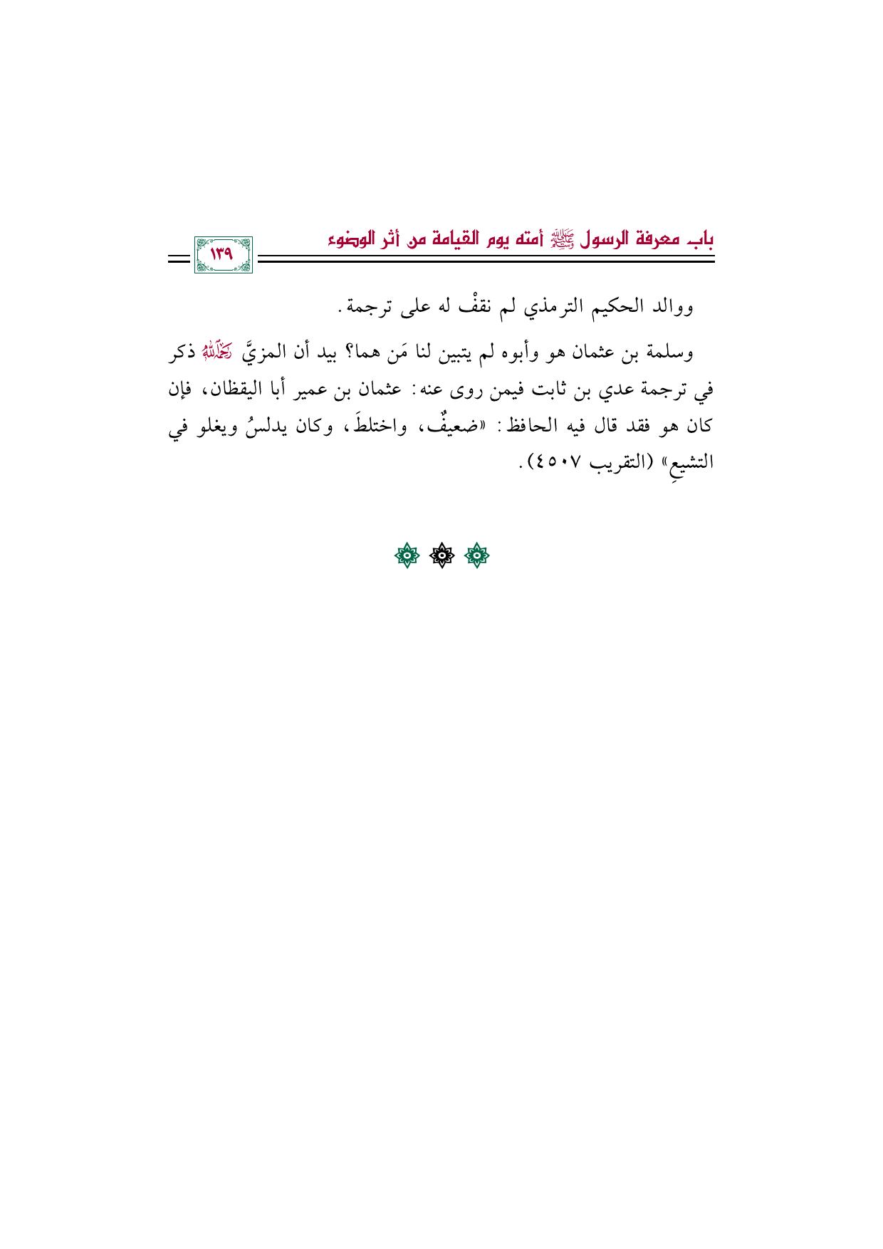 وسلمة بن عثمان هو وأبوه لم يتبين لنا مَن هما؟ بيد أن المزيَّ رحمه الله ذكر في ترجمة عدي بن ثابت فيمن روى عنه: عثمان بن عمير أبا اليقظان، فإن كان هو فقد قال فيه الحافظ: "ضعيفٌ، واختلطَ، وكان يدلسُ ويغلو في التشيعِ" (التقريب ٤٥٠٧).