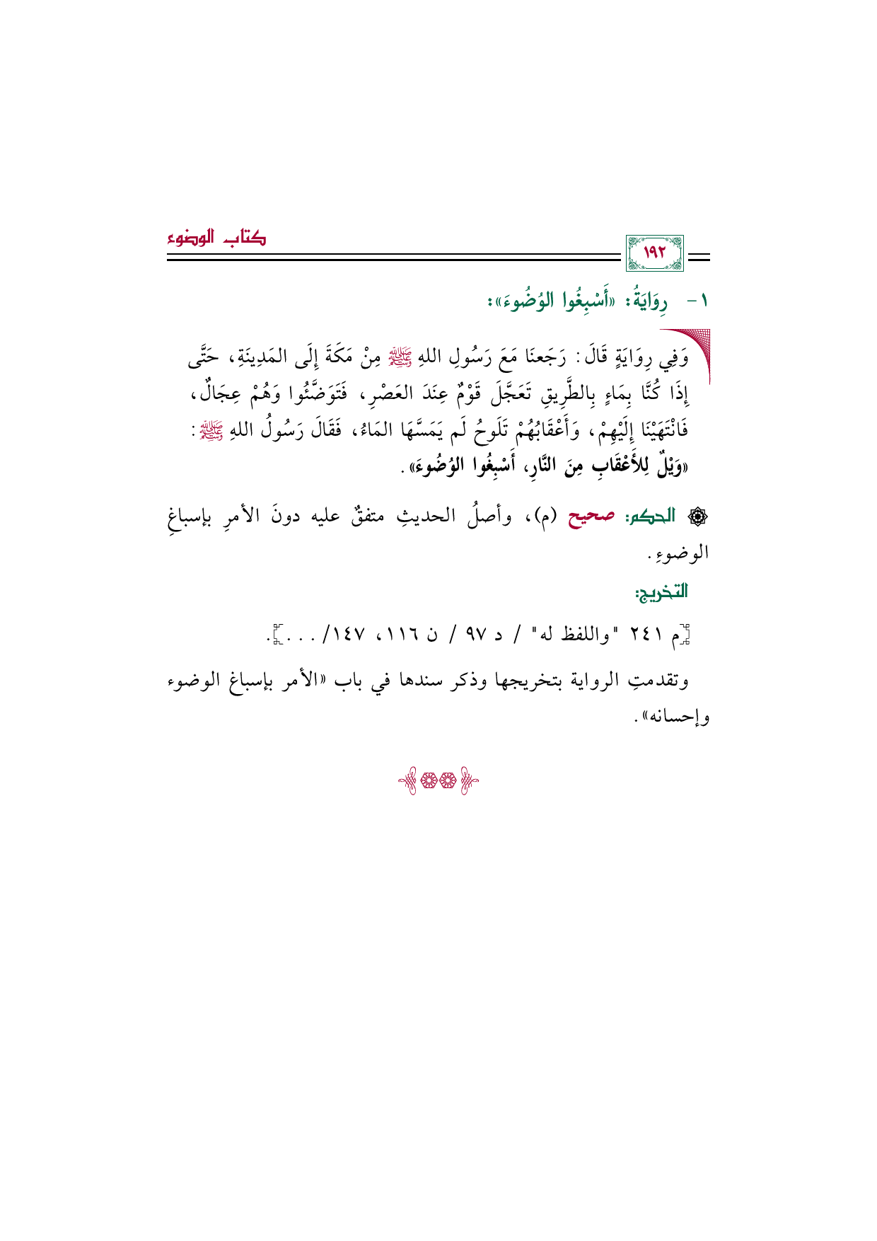 رِوَايَةُ أَسْبِغُوا الوُضُوءَ