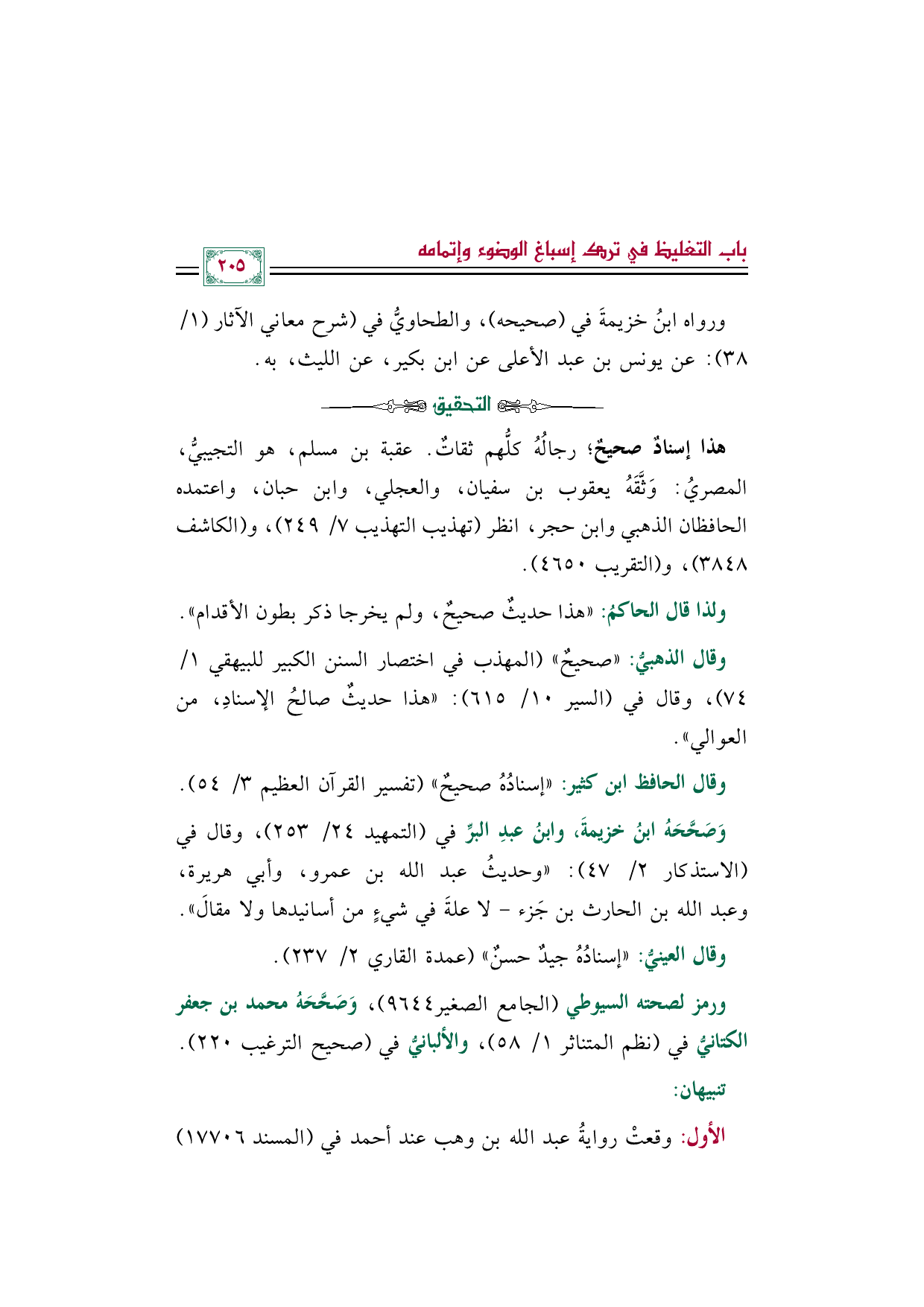 وَصَحَّحَهُ ابنُ خزيمةَ، وابنُ عبدِ البرِّ في (التمهيد ٢٤/ ٢٥٣)، وقال في (الاستذكار ٢/ ٤٧): "وحديثُ عبد الله بن عمرو، وأبي هريرة، وعبد الله بن الحارث بن جَزء- لا علةَ في شيءٍ من أسانيدها ولا مقالَ".