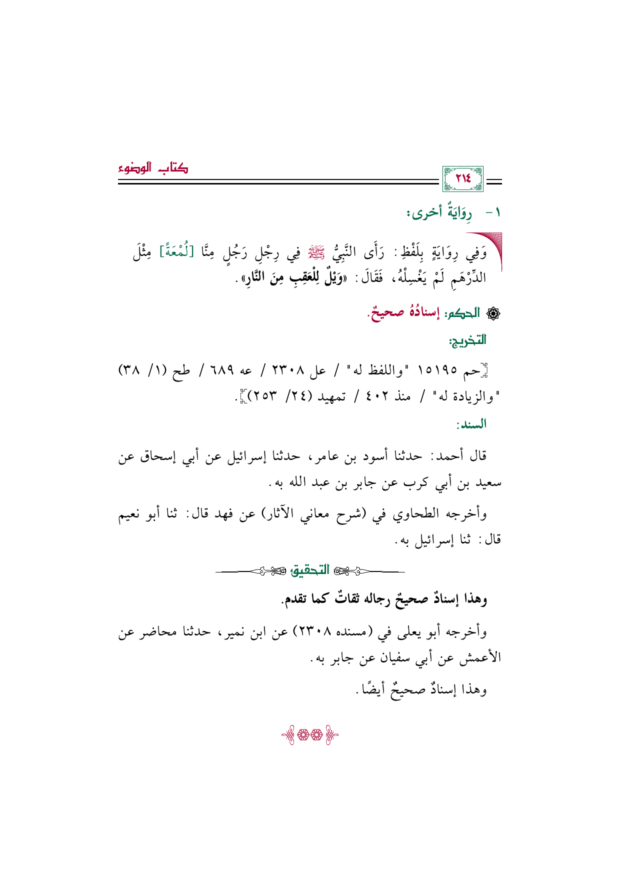 وأخرجه الطحاوي في (شرح معاني الآثار) عن فهد قال: ثنا أبو نعيم قال: ثنا إسرائيل به.