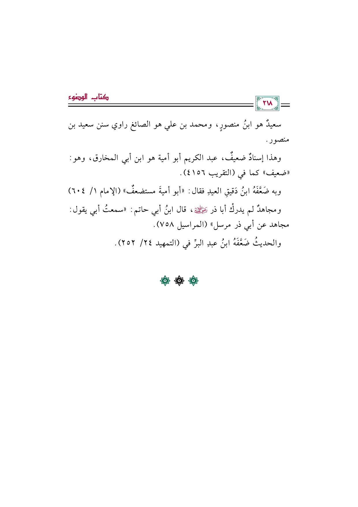 وبه ضَعَّفَهُ ابنُ دَقيقِ العيدِ فقال: "أبو أميةَ مستضعفٌ" (الإمام ١/ ٦٠٤)