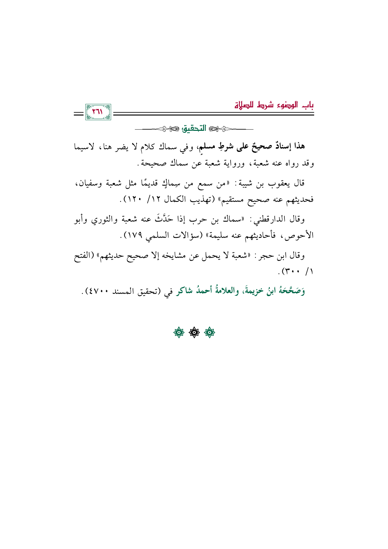 وَصَحَّحَهُ ابنُ خزيمةَ، والعلامةُ أحمدُ شاكر في (تحقيق المسند ٤٧٠٠).