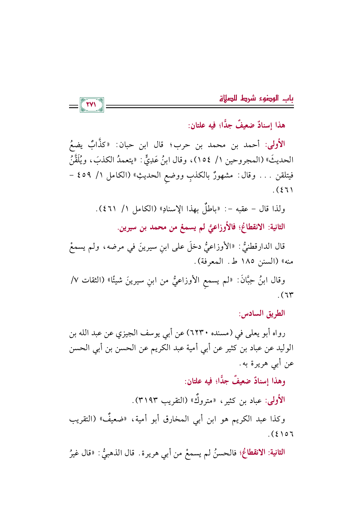 ولذا قال -عقبه-: "باطلٌ بهذا الإسنادِ" (الكامل ١/ ٤٦١).