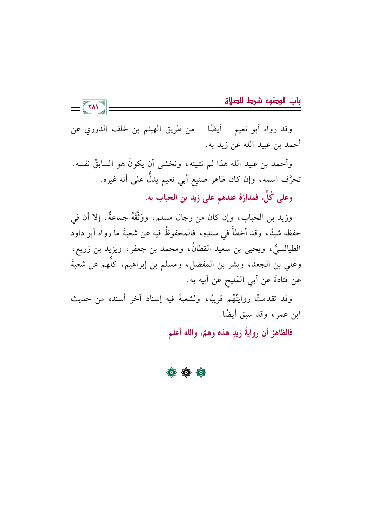وعلى كُلٍّ، فمدارُهُ عندهم على زيد بن الحباب به.