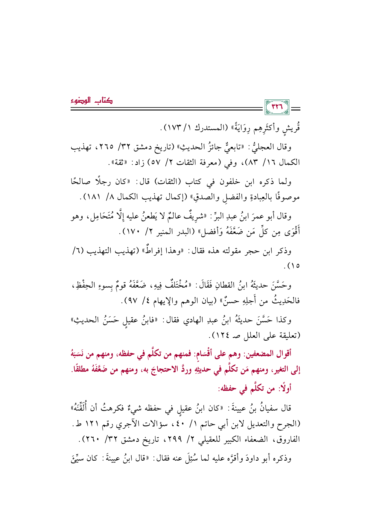 أقوال المضعفين: وهم على أقْسَامٍ: فمنهم من تكلَّم في حفظه، ومنهم من نَسَبَهُ إلى التغير، ومنهم مَن تكلَّم في حديثِهِ وردَّ الاحتجاجَ به، ومنهم من ضَعَّفَهُ مطلقًا.
