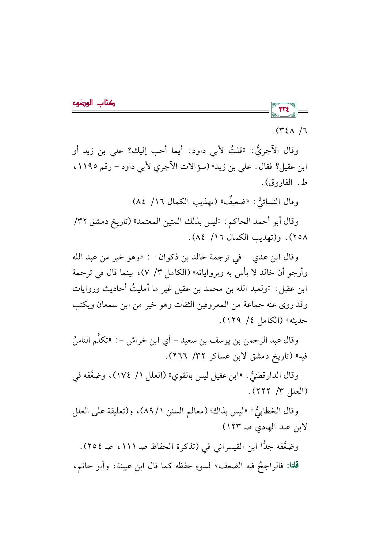 وقال الخطابيُّ: ((ليس بذاك)) (معالم السنن ١/ ٨٩)، و (تعليقة على العلل لابن عبد الهادي صـ ١٢٣)