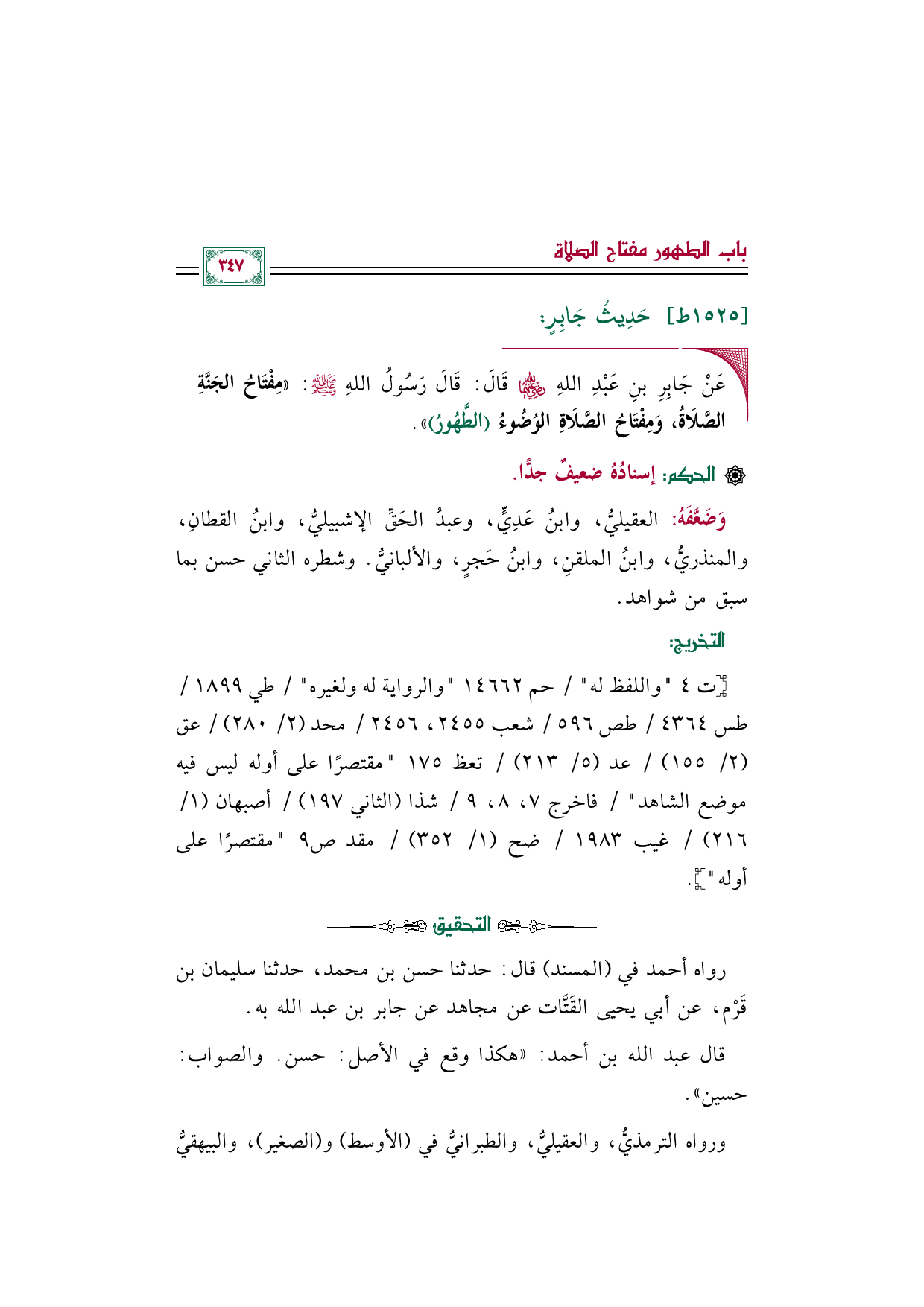 رواه أحمد في (المسند) قال: حدثنا حسن بن محمد، حدثنا سليمان بن قَرْم، عن أبي يحيى القَتَّات عن مجاهد عن جابر بن عبد الله به.