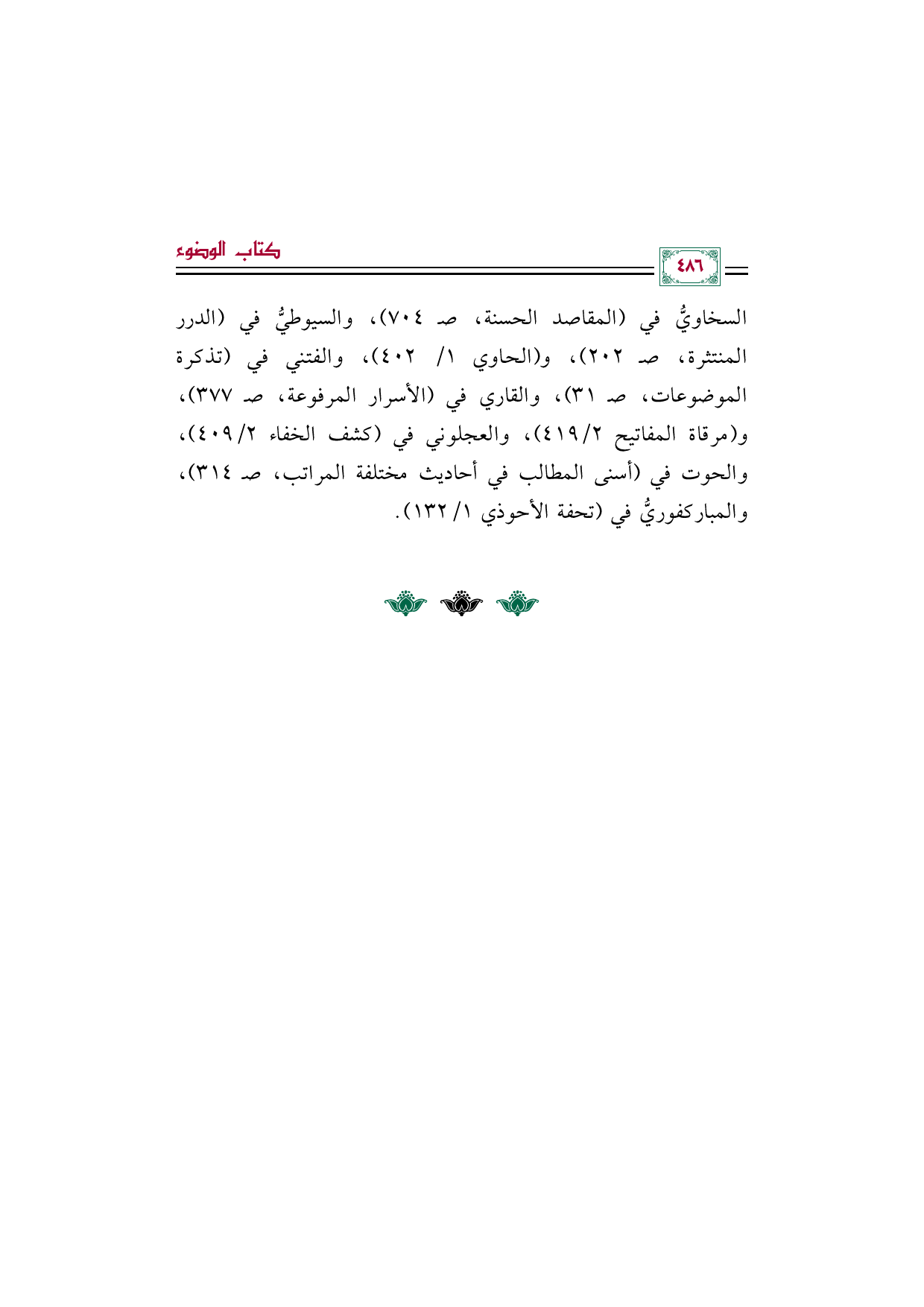السخاويُّ في (المقاصد الحسنة، صـ ٧٠٤)، والسيوطيُّ في (الدرر المنتثرة، صـ ٢٠٢)، و (الحاوي ١/ ٤٠٢)، والفتني في (تذكرة الموضوعات، صـ ٣١)، والقاري في (الأسرار المرفوعة، صـ ٣٧٧)، و (مرقاة المفاتيح ٢/ ٤١٩)، والعجلوني في (كشف الخفاء ٢/ ٤٠٩)، والحوت في (أسنى المطالب في أحاديث مختلفة المراتب، صـ ٣١٤)، والمباركفوريُّ في (تحفة الأحوذي ١/ ١٣٢).