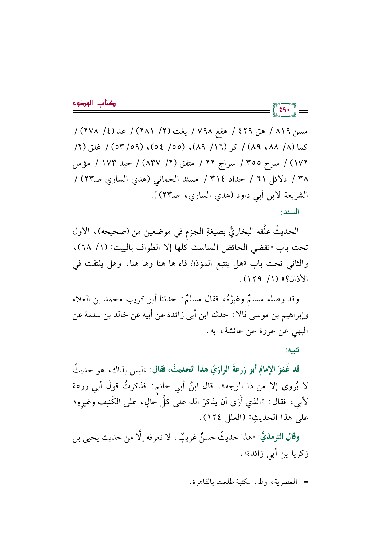 وقال الترمذيُّ: "هذا حديثٌ حسنٌ غريبٌ، لا نعرفه إلَّا من حديث يحيى بن زكريا بن أبي زائدة".