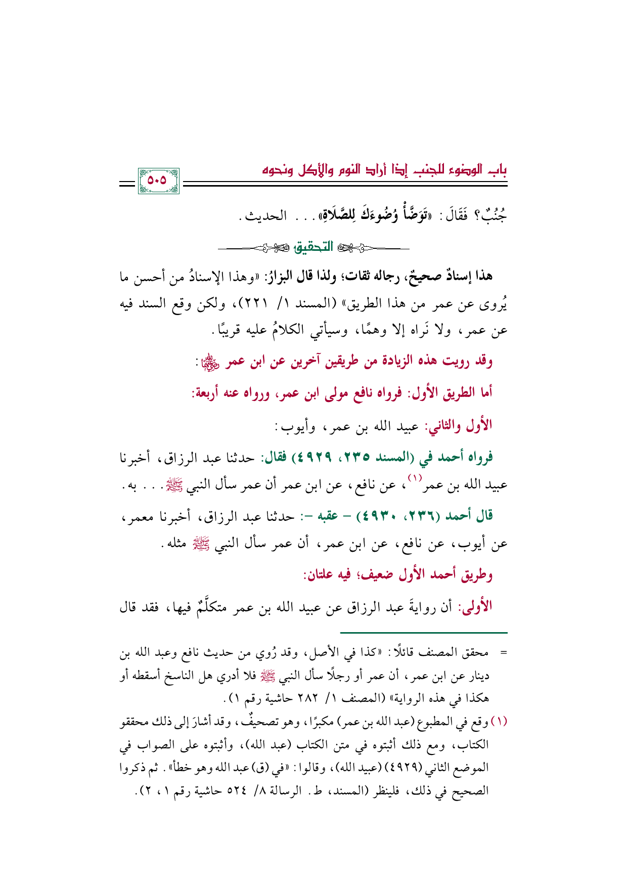 (¬١) وقع في المطبوع (عبد الله بن عمر) مكبرًا، وهو تصحيفٌ، وقد أشارَ إلى ذلك محققو الكتاب، ومع ذلك أثبتوه في متن الكتاب (عبد الله)، وأثبتوه على الصواب في الموضع الثاني (٤٩٢٩) (عبيد الله)، وقالوا: "في (ق) عبد الله وهو خطأ". ثم ذكروا الصحيح في ذلك، فلينظر (المسند، ط. الرسالة ٨/ ٥٢٤ حاشية رقم ١، ٢).