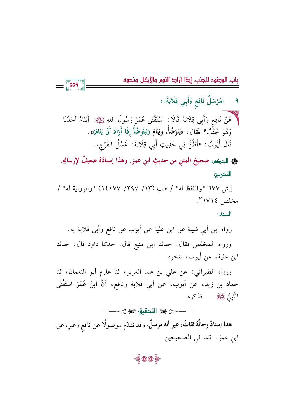 رواه ابن أبي شيبة عن ابن علية عن أيوب عن نافع وأبي قلابة به.