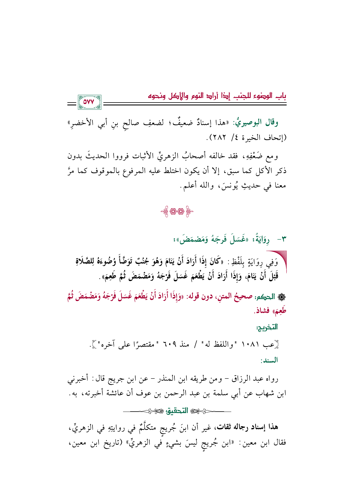 هذا إسناد رجاله ثقات، غير أن ابنَ جُريجٍ متكلَّمٌ في روايتِهِ في الزهريِّ، فقال ابن معين: "ابن جُريجٍ ليسَ بشيءٍ في الزهريِّ" (تاريخ ابن معين،