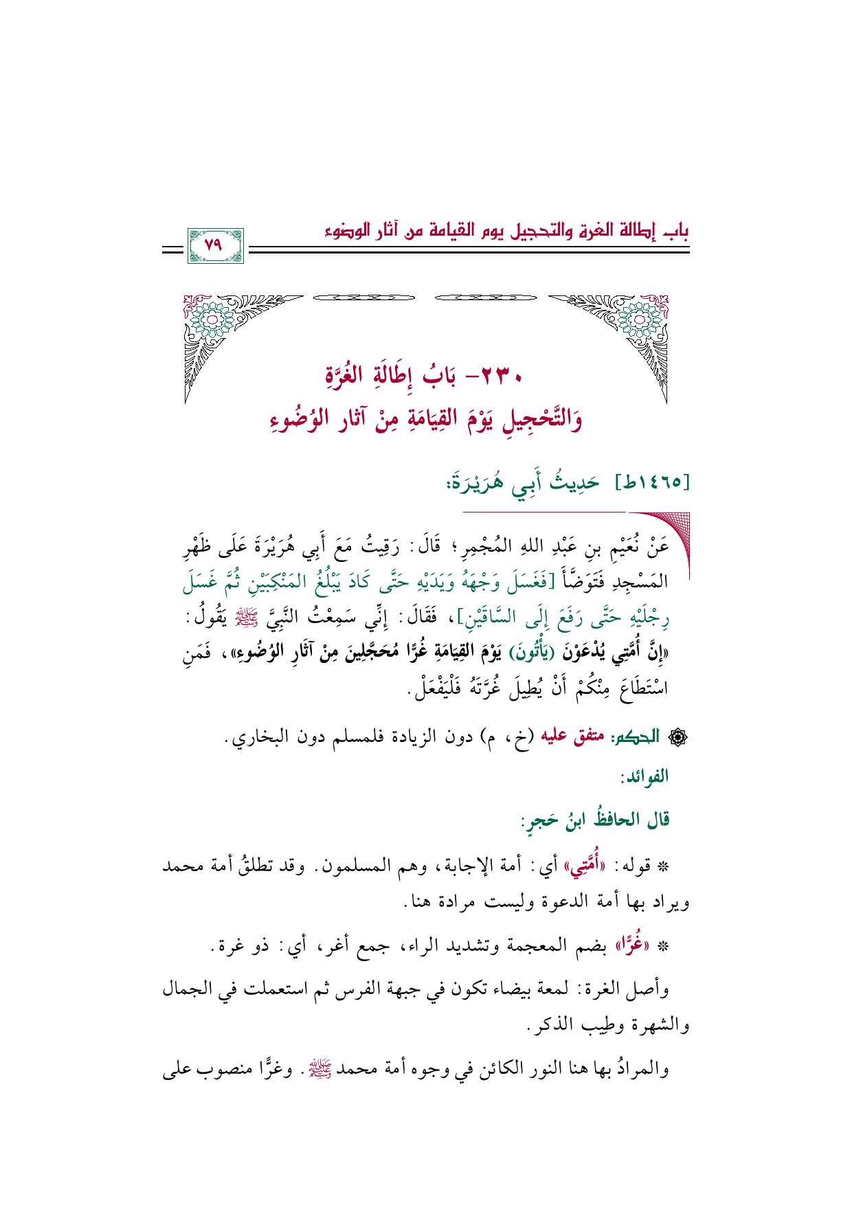 - «غُرًّا» بضم المعجمة وتشديد الراء، جمع أغر، أي: ذو غرة.