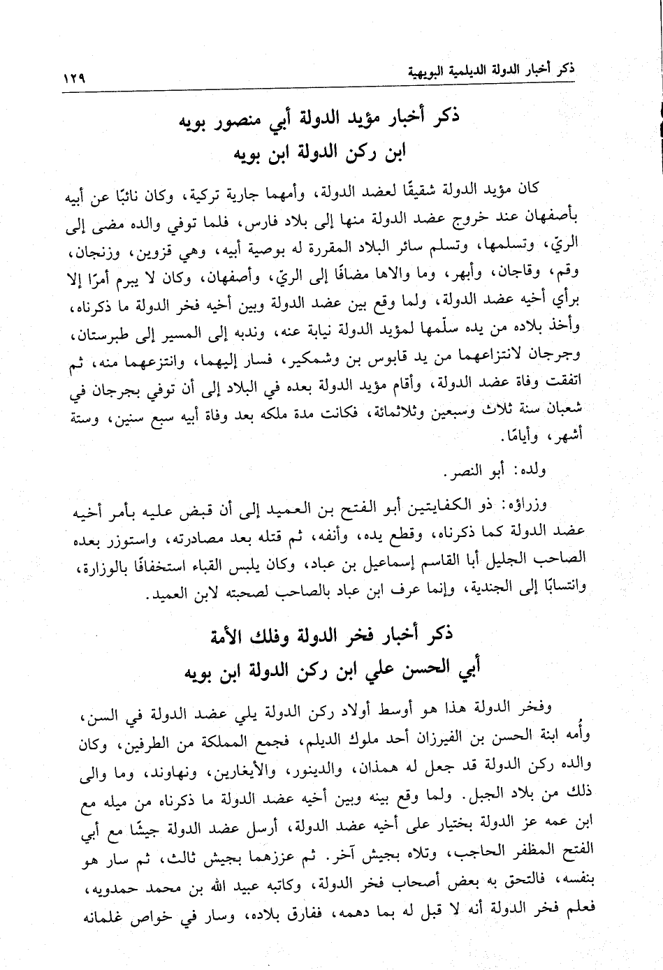 ذكر أخبار فخر الدولة وفلك الأمة أبي الحسن على بن ركن الدولة بن بويه