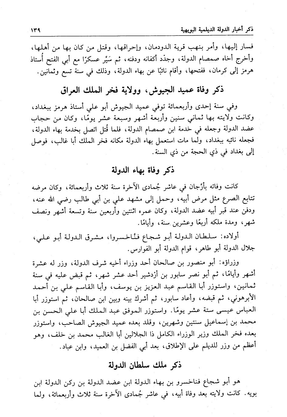 ذكر وفاة عميد الجيوش وولاية فخر الملك العراق