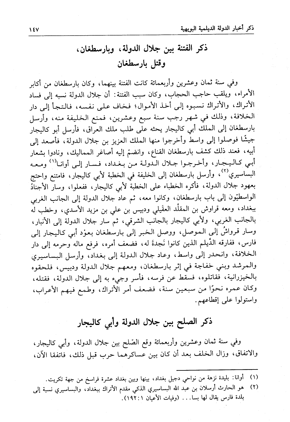 ذكر الفتنة بين جلال الدولة و بارسطغان وقتل بارسطغان