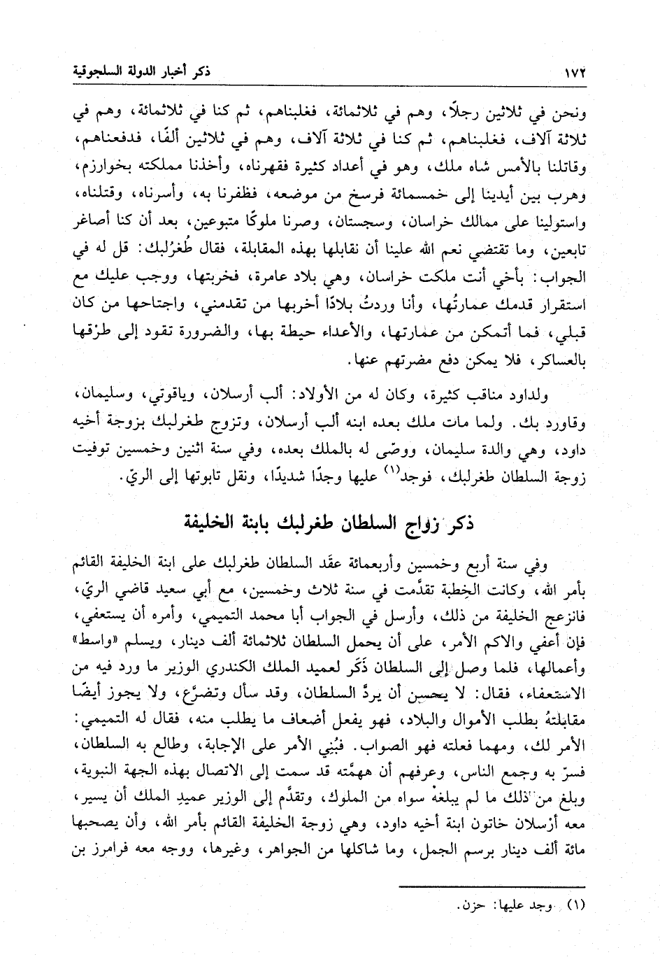 ذكر زواج السلطان طغرلبك بابنة الخليفة