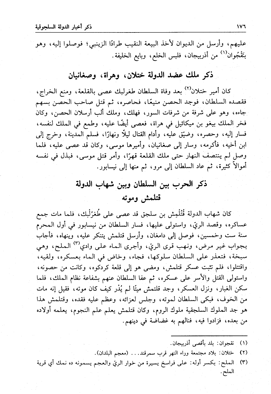 ذكر الحرب بين السلطان وبين شهاب الدولة قتلمش وموته