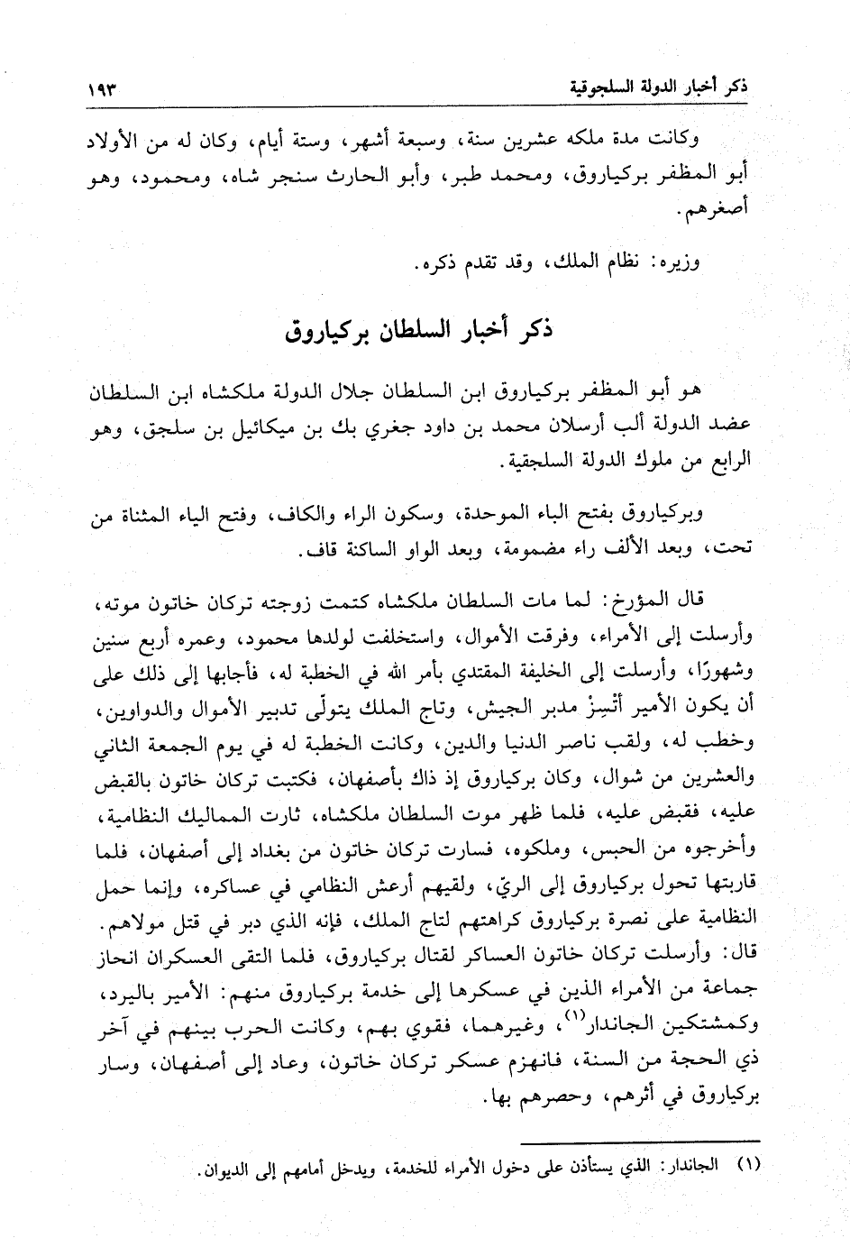 هو أبو المظفر بركيا روق بن السلطان جلال الدولة ملكشاه ابن السلطان عضد الدولة ألب أرسلان محمد بن داود جغري بك بن ميكائيل بن سلجق ، وهو الرابع من ملوك الدولة السلجقية .