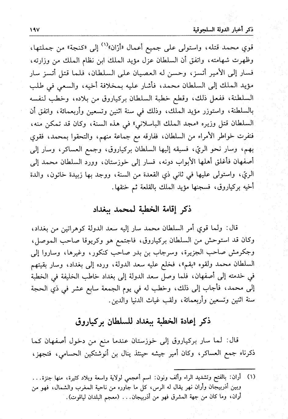 ذكر إعادة الخطبة ببغداد للسلطان بركياروق