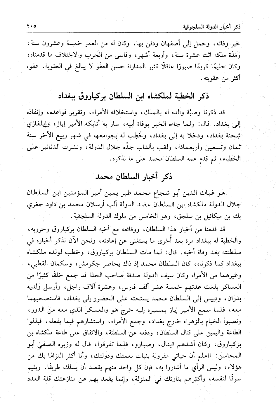 ذكر الخطبة لملكشاه بن السلطان بركياروق ببغداد