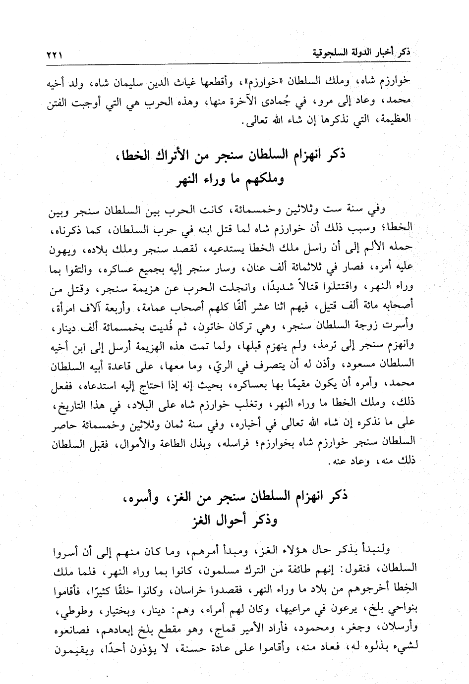 ذكر انهزام السلطان سنجر من الأتراك الخطا ، وملكهم ما وراء النهر