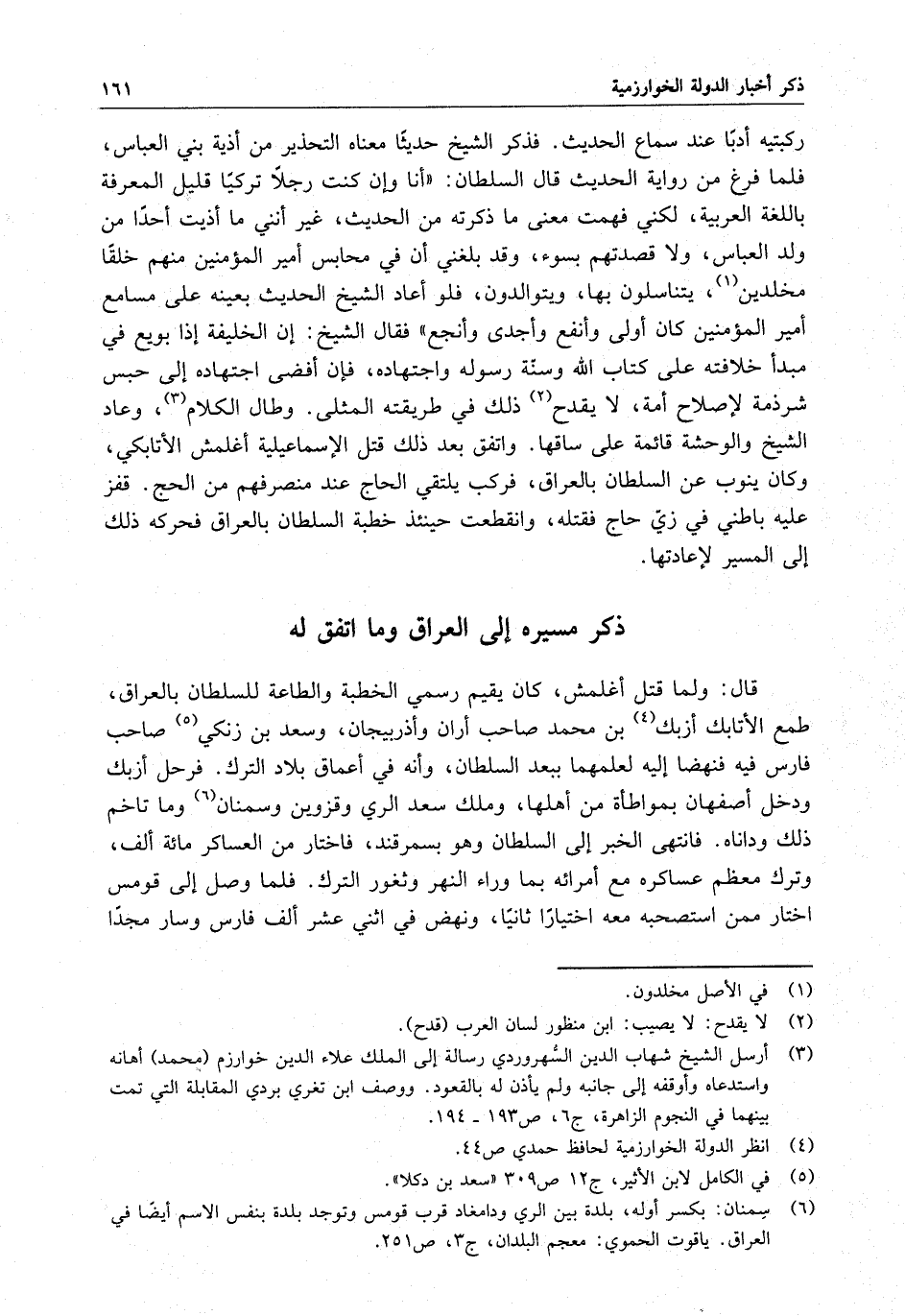 قال : ولما قتل أغلمش ، وكان يقيم رسمي الخطبة والطاعة للسلطان بالعراق ، طمع الأتابك أزبك بن محمد صاحب أران وأذربيجان ، وسعد بن زنكي صاحب فارس فيه فنهضا إليه لعلمهما ببعد السلطان ، وأنه في أعماق بلاد الترك . فرحل أزبك ودخل أصفهان بمواطأة من أهلها ، وملك سعد الري وقزوين وسمنان وما تاخم ذلك وداناه . فانتهى الخبر إلى السلطان وهو بسمرقند ، فاختار من العساكر ماية ألف ، وترك معظم عساكره مع أمرائه بما وراء النهر وثغور الترك . فلما وصل إلى قومس اختار ممن استصحبه معه اختيارا ثانيا ، ونهض في اثني عشر ألف فارس وسار مجدا