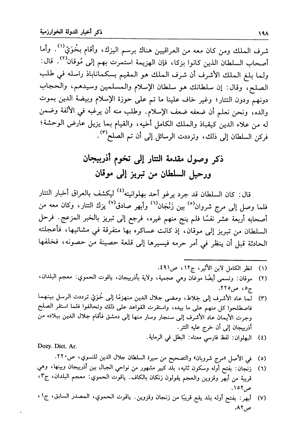 ذكر وصول مقدمة التتار إلى تخوم أذربيجان ورحيل السلطان من تبريز إلى موقان