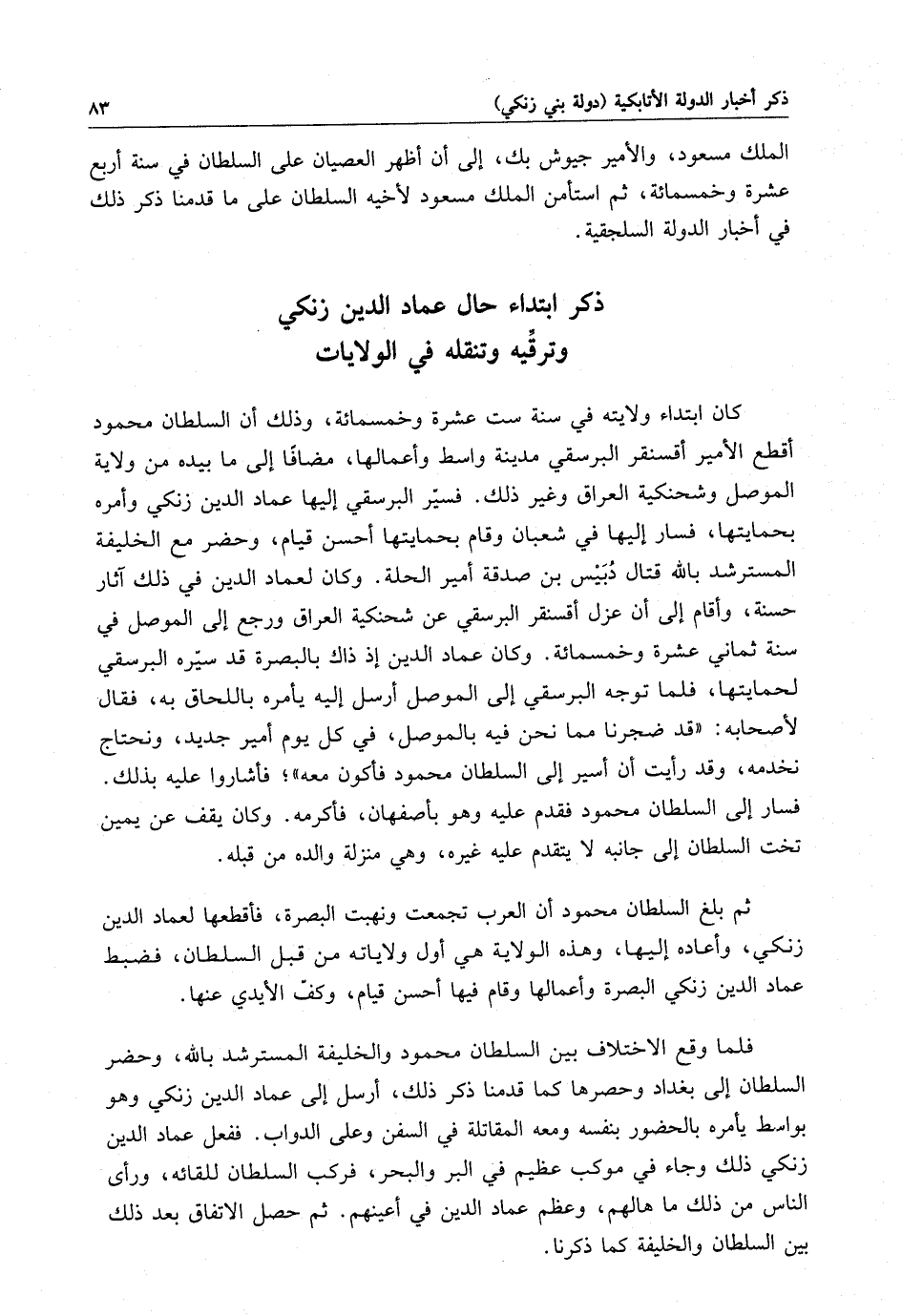 ذكر ابتداء حال عماد الدين زنكي وترقيه وتنقله في الولايات