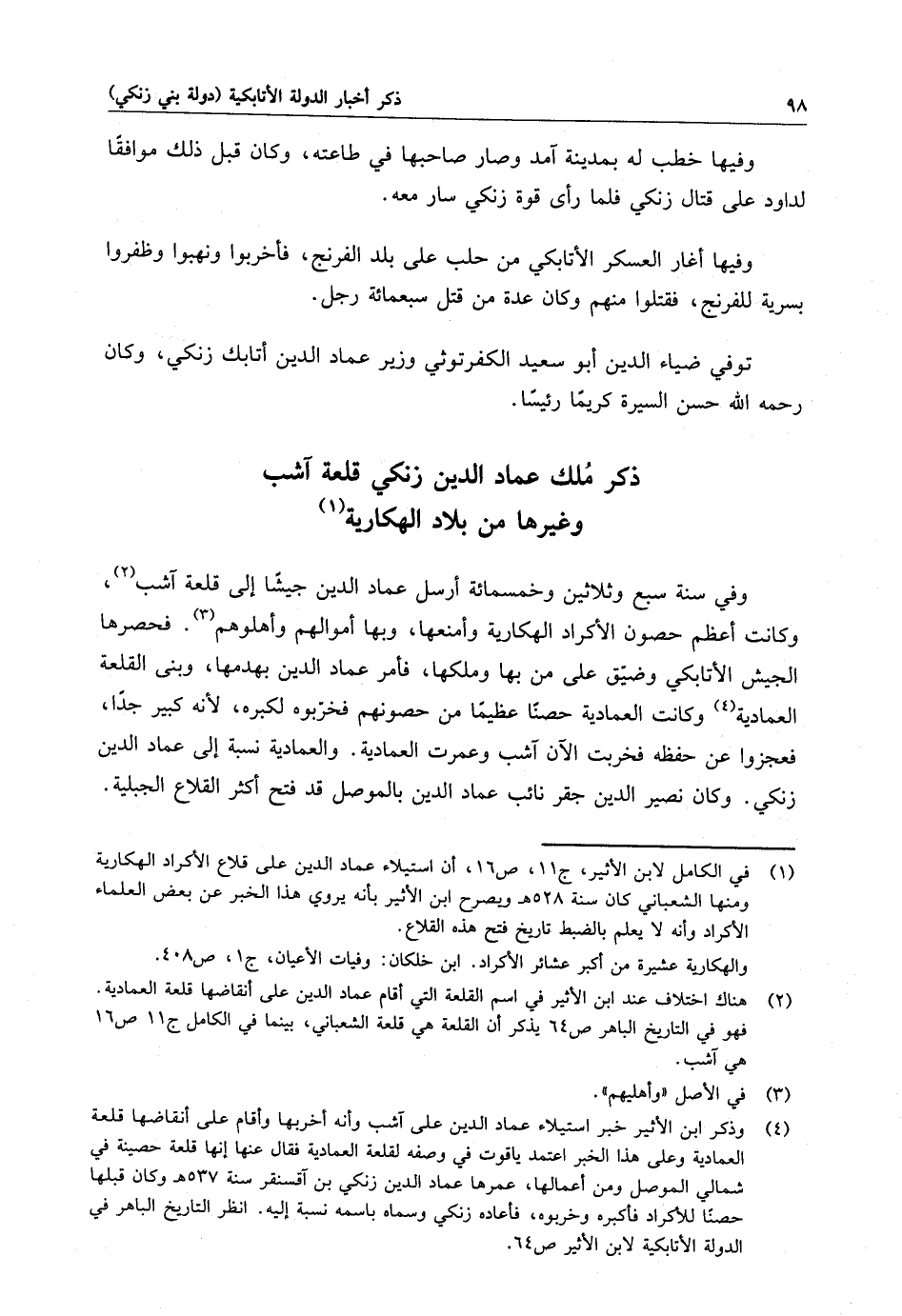 ذكر ملك عماد الدين زنكي قلعة آشب وغيرها من بلاد الهكارية