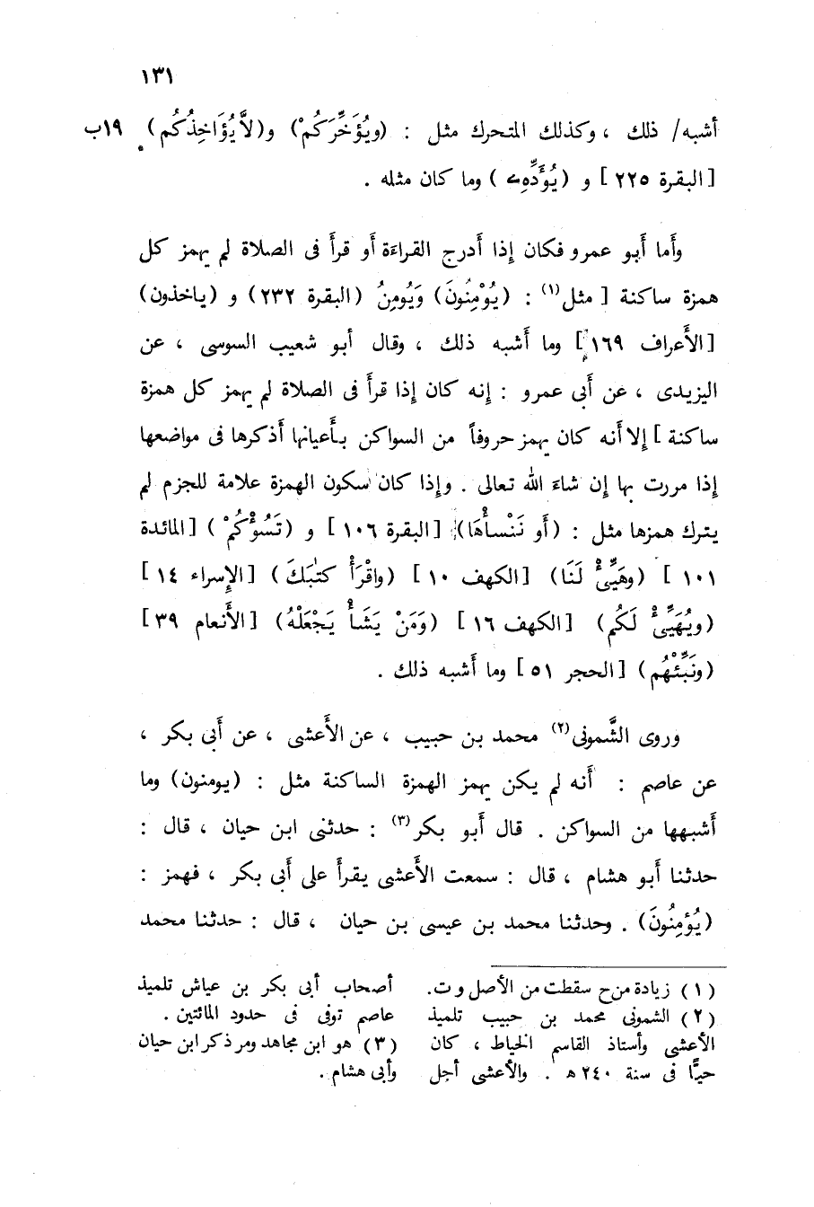 وَكَذَلِكَ مَذْهَب أبي عَمْرو وَعَاصِم إِلَّا فِي قَوْله {وَمَا أنسانيه} الْكَهْف 63 فَإِن أَبَا بكر بن عَيَّاش وحفصا اخْتلفَا فِيهِ عَن عَاصِم فروى أَبُو بكر عَن عَاصِم {وَمَا أنسانيه} بِكَسْر الْهَاء من غير بُلُوغ يَاء