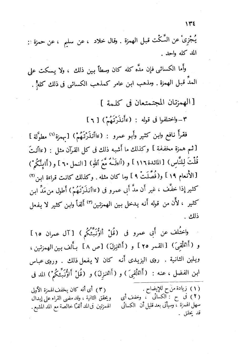 وَلَا يهمز همزا شَدِيدا وَلَا يسكت على الْيَاء وَالْألف وَالْوَاو الَّتِي قبل الْهمزَة وَإِذا مدهن يصل الْمَدّ بِالْهَمْز ويمد ويحقق الْقِرَاءَة وَلَا يشدد وَيقرب بَين الْمَمْدُود وَغير الْمَمْدُود وَكَذَلِكَ كَانَ مَذْهَب ابْن كثير وَأبي عَمْرو