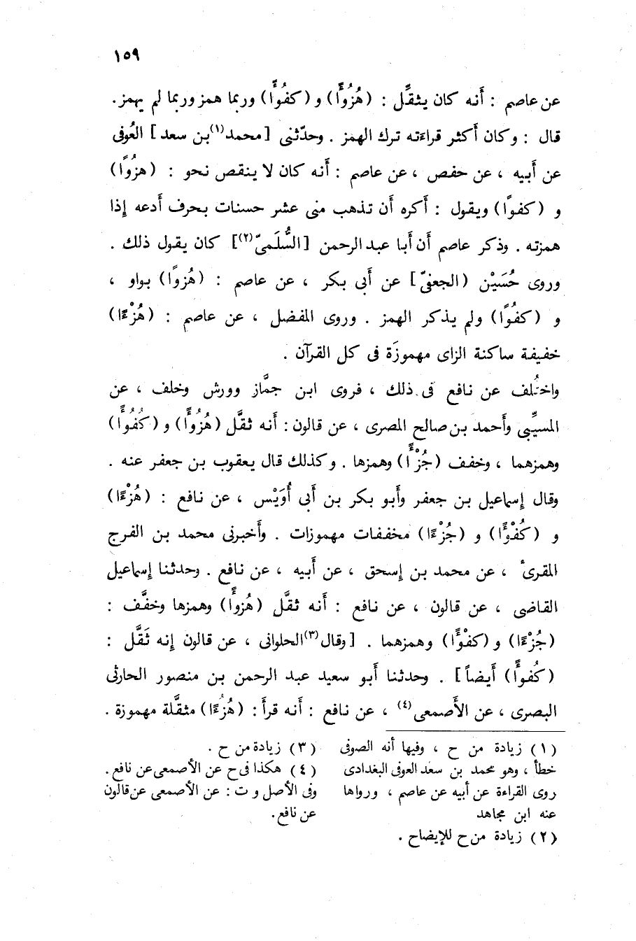 وحَدثني مُحَمَّد بن سعد الْعَوْفِيّ عَن أَبِيه عَن حَفْص عَن عَاصِم أَنه كَانَ لَا ينقص نَحْو {هزوا} و {كفوا} وَيَقُول أكره أَن تذْهب مني عشر حَسَنَات بِحرف أَدَعهُ إِذا همزته
