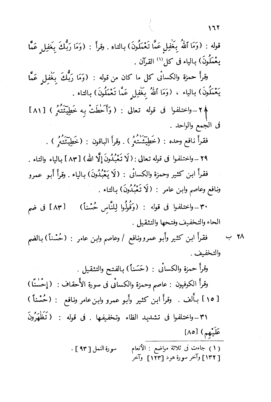 28 - وَاخْتلفُوا فِي قَوْله تَعَالَى {وأحاطت بِهِ خطيئته} 81 فِي الْجمع وَالْوَاحد