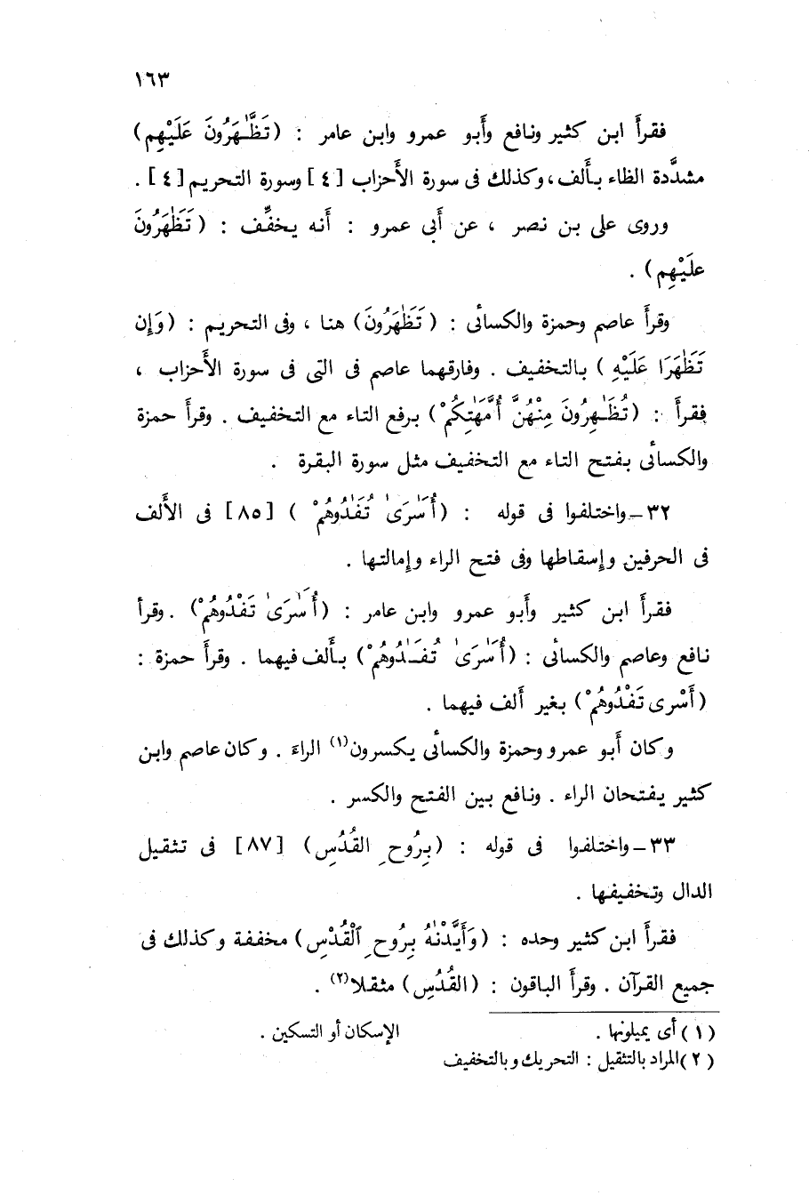 31 - وَاخْتلفُوا فِي تَشْدِيد الظَّاء وتخفيفها