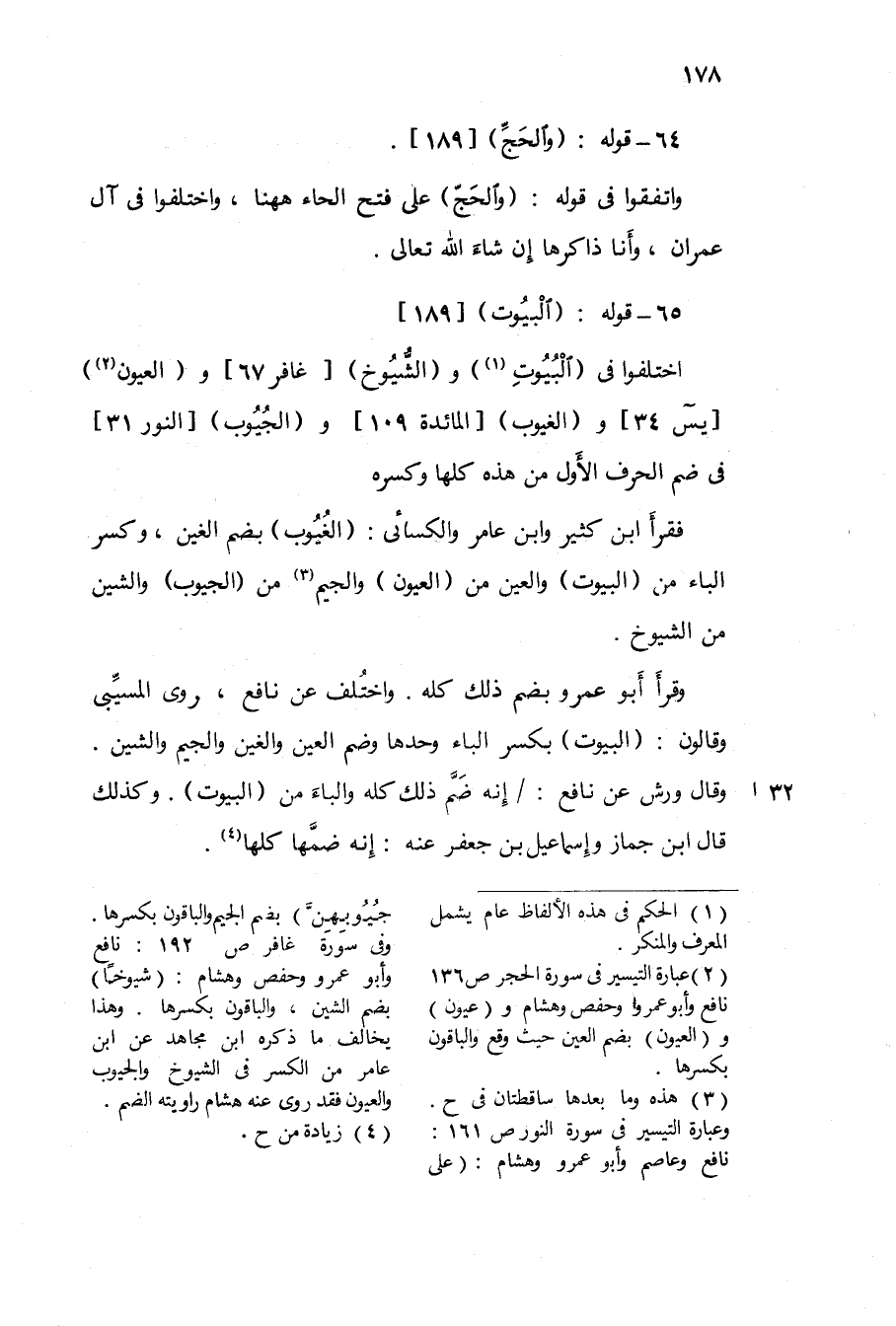 وَاتَّفَقُوا فِي قَوْله {وَالْحج} على فتح الْحَاء هَهُنَا وَاخْتلفُوا فِي آل عمرَان وَأَنا ذاكرها إِن شَاءَ الله تَعَالَى