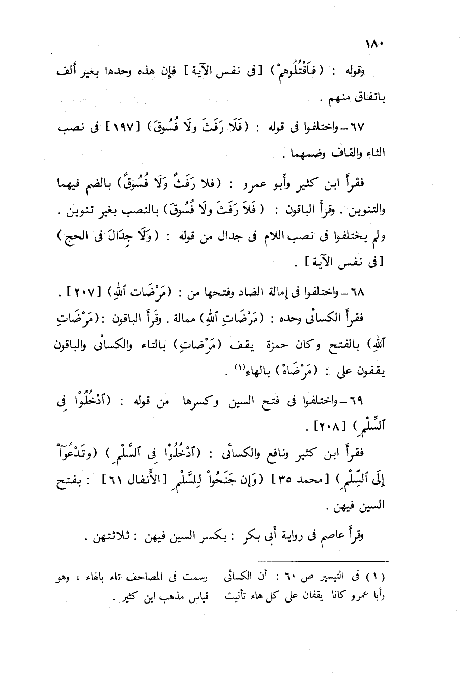 69 - وَاخْتلفُوا فِي فتح السِّين وَكسرهَا من قَوْله {ادخُلُوا فِي السّلم} 208